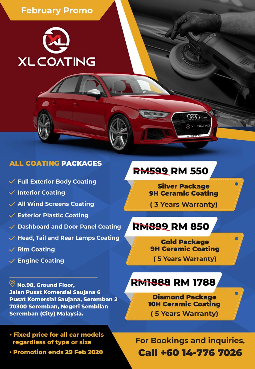 Xl Coating Seremban 2 On Twitter Xl Coating February Promotion Ceramic Coating Packages Fixed Price For All Car Models And Sizes Xlcoatingseremban2 Ceramiccoating 9hcoating 10hcoating Wheelcoating Interiorcoating Enginecoating